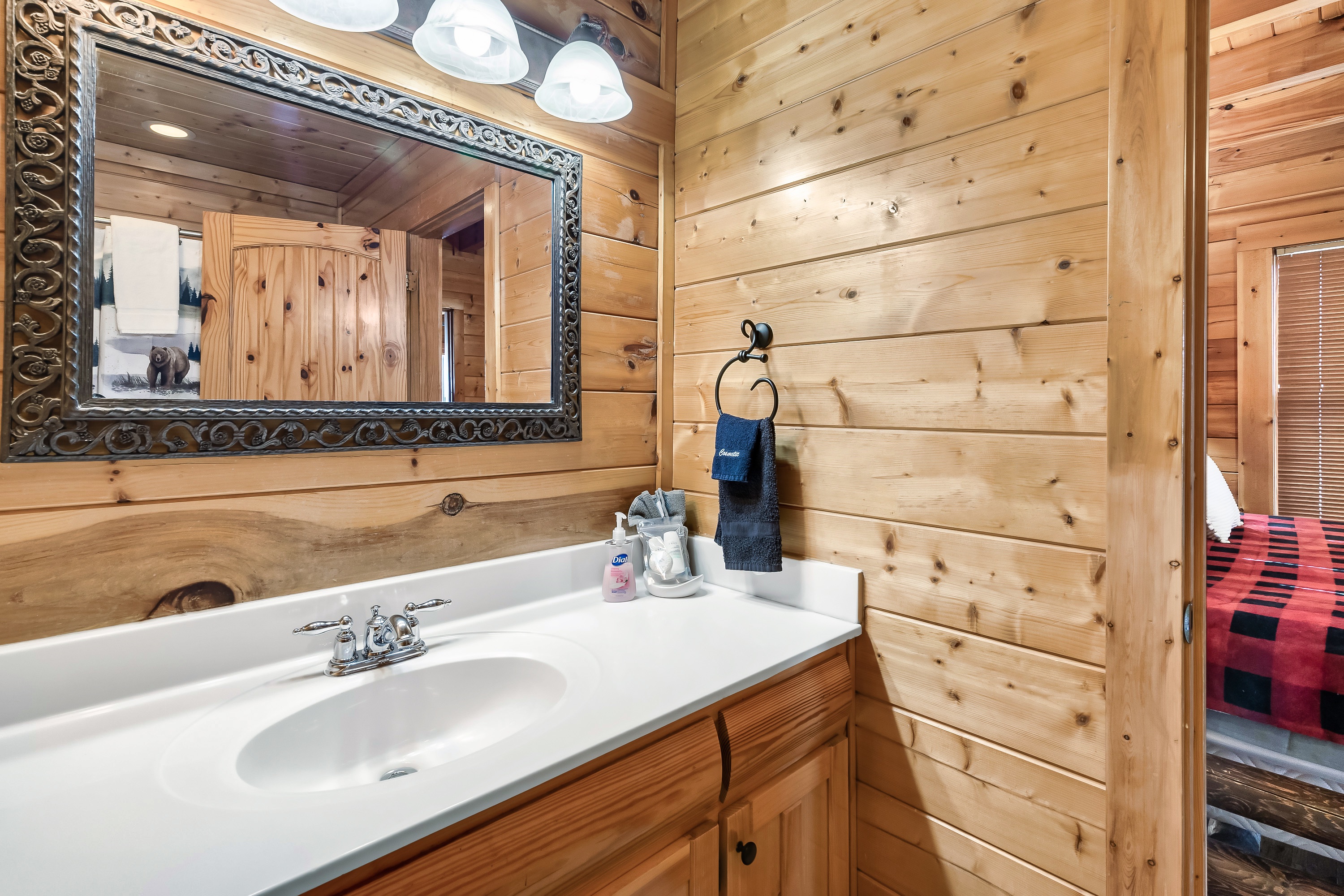 ☆☆☆☆☆ "My kids loved the huge bunk beds and the amazing game room! I loved that they had their own bathroom. My parents stayed in the upstairs bedroom with the king bed and they enjoyed waking up to a beautiful sunrise every morning. My husband and I stayed in the bedroom by the living area, all the beds were very comfortable. The trees in front of the cabin have been trimmed so the view is unobstructed, unlike neighboring cabins. The parking is easy and not on a hill. The owner is quick to respond with questions and checked to make sure we had everything we needed. The hot water is hot and the air conditioner is cold. The cabin is located within a few minutes of all the fun things in pigeon forge but still had amazing views and a quiet environment. The balconies had plenty of seating and was a great place to drink my morning coffee. We definitely enjoyed our stay!" - Tiffany